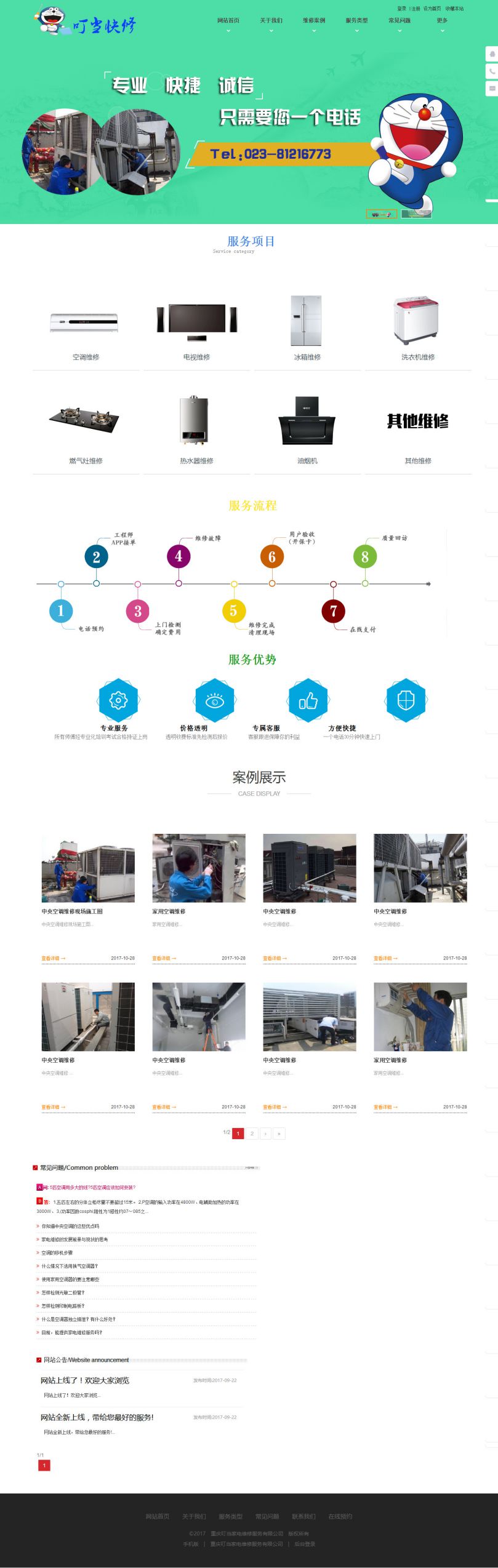 重慶叮當(dāng)家電維修服務(wù)有限公司是維修,安裝等一體化綜合公司。公司擁有維修經(jīng)驗(yàn)豐富,維修技術(shù)過硬的技師,同時(shí)公司擁有先進(jìn)的檢測設(shè)備,為維修提供強(qiáng)有力的技術(shù)保障。公司一直遵循“為顧客提供優(yōu)質(zhì)服務(wù)”的服務(wù)理念,制定了嚴(yán)格完善的售后服務(wù)制度,把為顧客提供優(yōu)質(zhì)服務(wù)作為前提,不斷提高自身的維修水平。